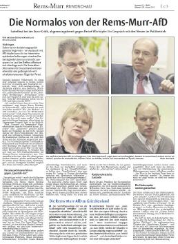Für PDF-Download, bitte Artikel links anklicken. Auch im Hinblick auf die aktuellen Ereignisse in der AfD muss man den Titel "Die Normalos von der Rems-Murr-AfD" wohl als Kompliment auffassen :-) |